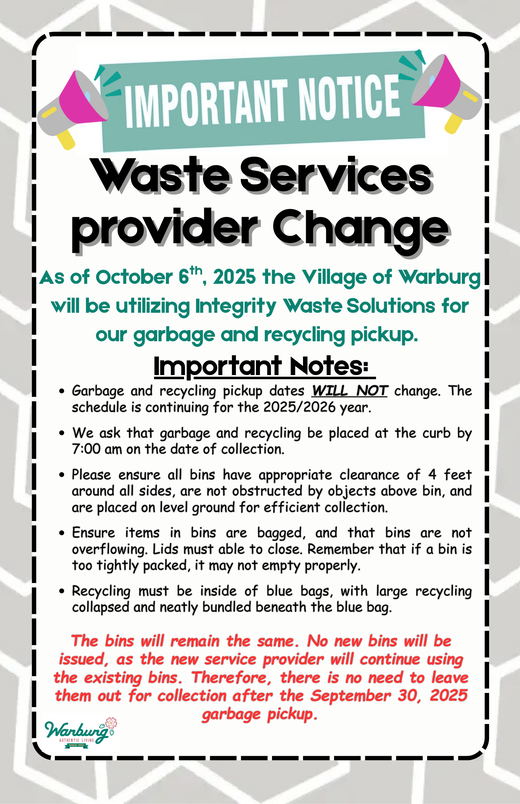 Notice of change of waste services provider, October 6th, 2025.